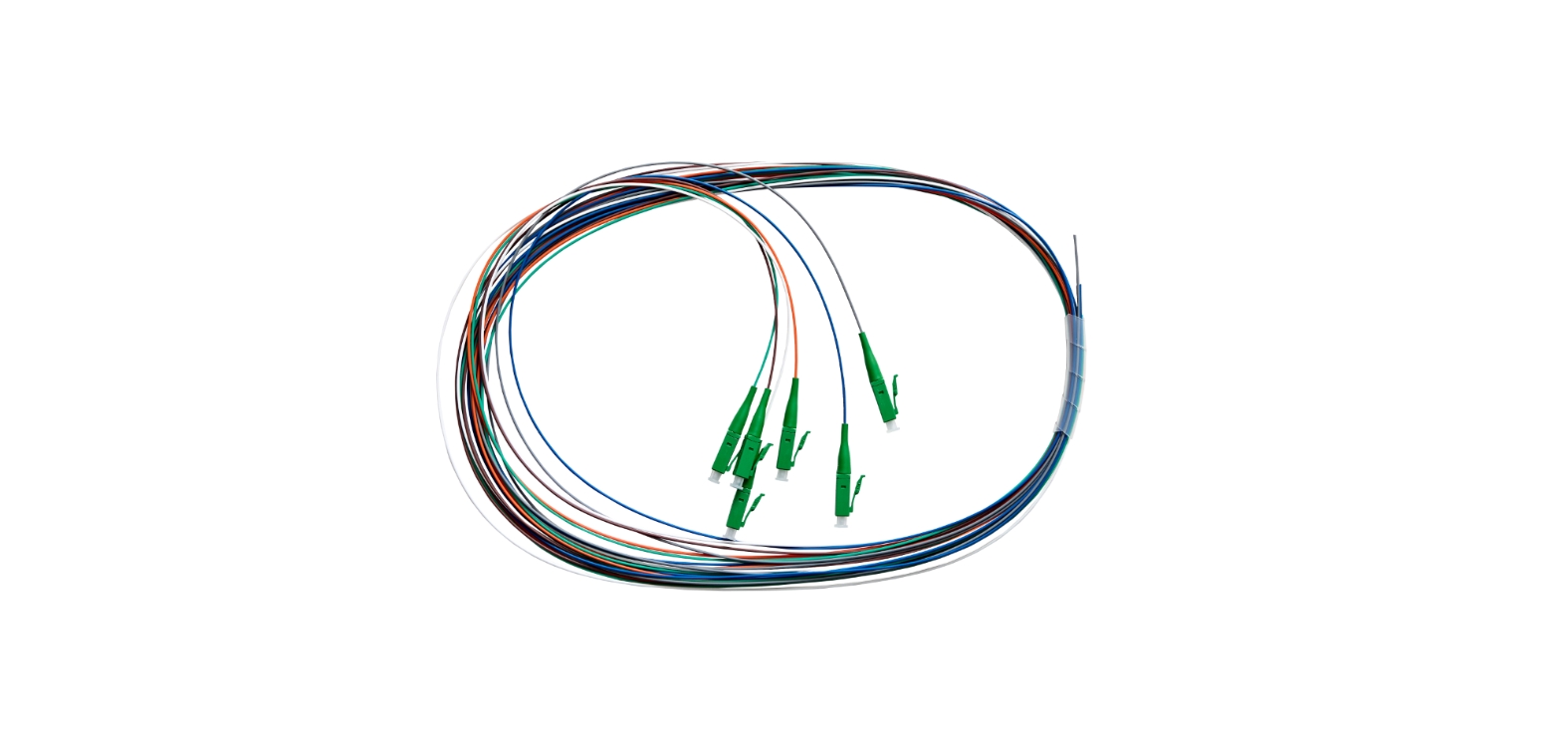 Each pack includes 6 colour-coded pigtails following international fibre identification standards, allowing fast installation, organised cable management, and simplified maintenance. The fibre tail is intended for fusion splicing onto the fibre run, while the factory-terminated LC/APC connector connects directly to adaptors or couplers within patch panels and ODF systems.