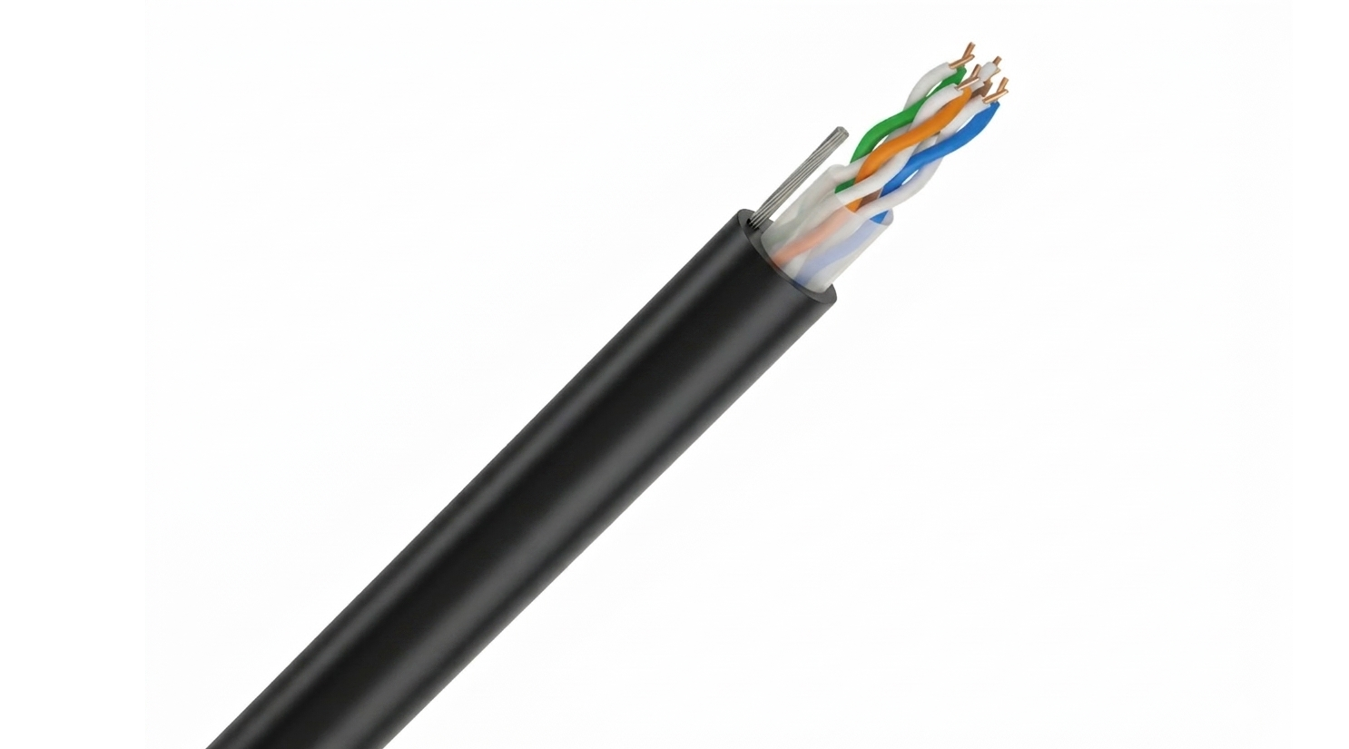 - Integrated messenger wire (steel support) for aerial installation