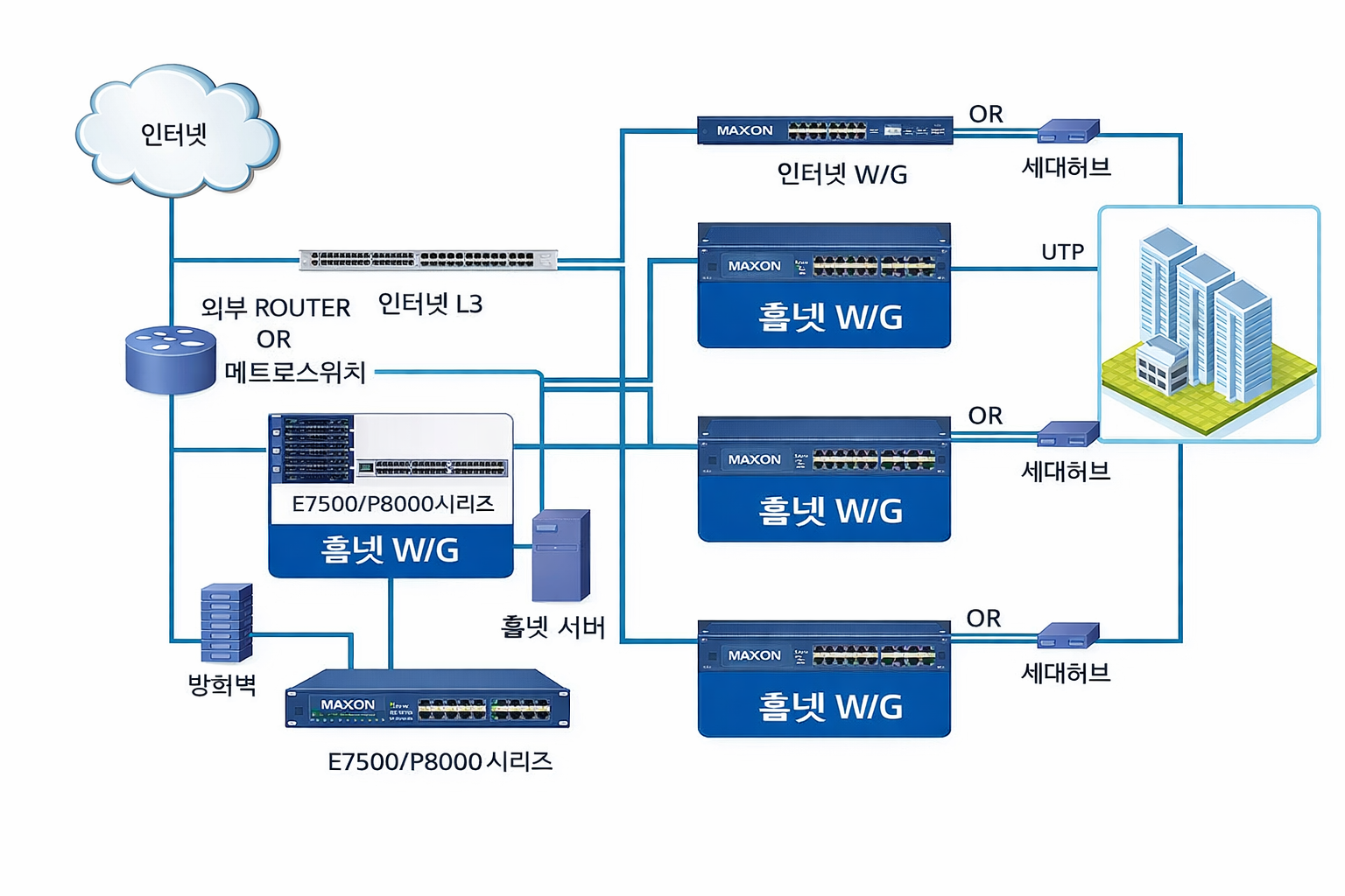 The MAXON E7500 Series and P8000 Series switches are L3-based, high-capacity platforms that support advanced IP services and large-scale traffic processing. As residential bandwidth requirements evolve from 100 Mbps to Gigabit-level connectivity, high-capacity and highly available network architecture becomes essential.